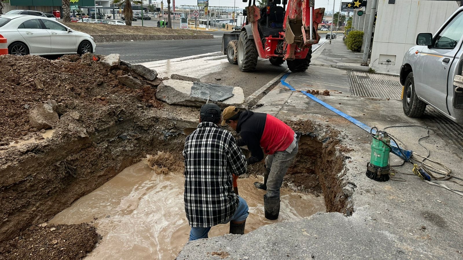 El desperfecto fue localizado en una línea de agua potable de 10 pulgadas de diámetro, situación que requirió la intervención inmediata de cuadrillas especializadas para contener la fuga y evitar el desperdicio del recurso.